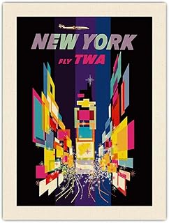 New York - Voler TWA (Trans World Airlines) - Times Square - Avion de Ligne Connie - Affiche Avion de David Klein c.1960s - Toile Organique Impression d'art 61x81cm