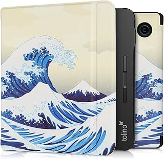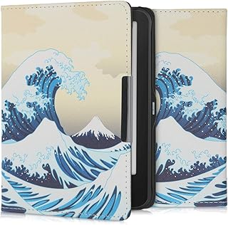 kwmobile Étui liseuse Compatible avec Tolino Vision 1/2 / 3/4 HD - Housse avec Rabat magnétique en Simili Cuir - Belle Vague Japonaise Bleu-Blanc-Beige