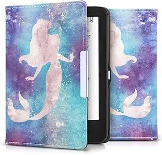 kwmobile Étui liseuse Compatible avec Tolino Vision 1/2 / 3/4 HD - Housse avec Rabat magnétique en Simili Cuir - Petite sirène Aquarelle Blanc-Bleu