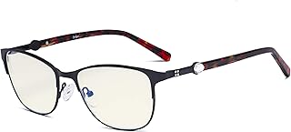 Eyekepper lunettes de vue anti lumiere bleu, monture acetate lunettes de lecture femme lunettes ordinateur, verre ambre (noir bleu,+0.00)