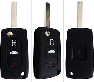 Coque de Silicone Cover clé pour télécommande Peugeot 208 301 308 408 508 2008 3008 5008 Citroen Cactus C3 C5 C6 C8 C4L DS3 DS4 DS5-3 Boutons (Noir)
