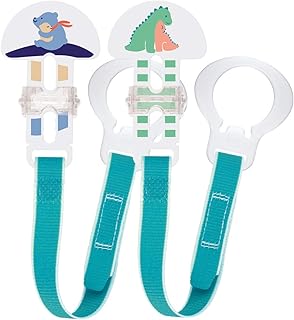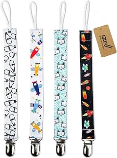 iZiv Sucette Bébé Clip Holder - 4 Pack Soother Chaînes Pacifier Laisses - Design Modèle Unisexe - Jouets Anneau de Dentition, Douche élégant Ensemble