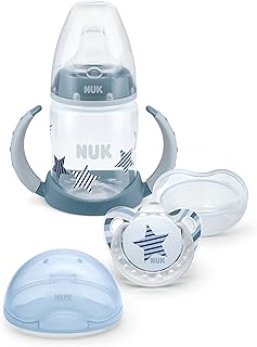 NUK Gift Set, First Choice Learner Feeding Bottle, Soother and Soother Box limited edition 6-18 months Blue