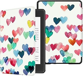 FINTIE Étui pour Kindle Paperwhite (10ème génération - modèle 2019/2018) - Coque Housse Flip Fin et léger, Fermeture magnétique avec Mise en Veille Automatique, Raining Hearts