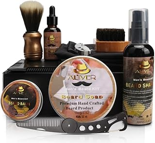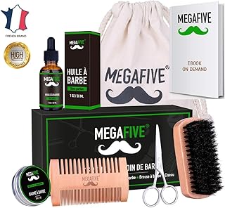 Kit barbe pour soin et entretien composé de Huile de Barbe,Baume de Barbe,Brosse à Barbe,Ciseaux à Barbe et Peigne à Barbe (Kit d'entretien de barbe)