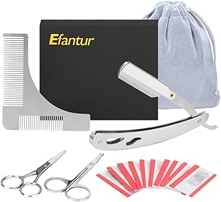 EFANTUR Kit barbe Kit entretien barbe comprend 1 Rasoir barbier Traditionnel, 1 Ciseaux pour le Nez, 1 Ciseaux Barber, 1 Peigne barbe , 10 lames de rasage et un sac de rangement
