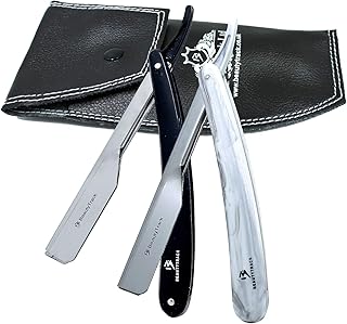 Candure Rasoir de Barbier - Coupe Choux barbe Rasoir Homme Barbier Manuel pour Professionel et Utilisation Personnelle Entretien Barbe avec Pochette en Cuir et Lames