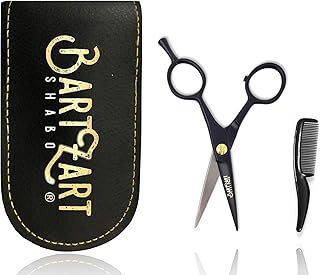 BartZart Petites ciseaux à barbe avec peigne à barbe et étui I Ciseaux à barbe pour homme I Kit de soins de barbe parfait pour les moustaches I Ciseaux tranchants petits