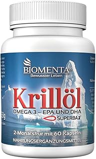 BIOMENTA Huile de Krill - 500 mg d'huile de krill SUPERBA par capsule - Omega-3 avec EPA, DHA, Astaxanthine, Phospholipides - 60 capsules d'huile de krill