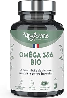 Apyforme - Omega 3 et 6 BIO et VEGAN - A base d'Huile de Chanvre - Sans Huile de Poisson - 100% Végétal - 90 Gélules - Fabriqué et Cultivé en France
