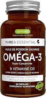 Pure & Essential Huile de Poisson Sauvage Oméga-3 Super Concentrée & Vitamine D3, 410 mg EPA & 250 mg DHA par capsule, 1-par-jour, 60 capsules