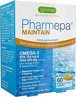 L'huile de poisson oméga-3 Pharmepa MAINTAIN, forte dose de 1000mg d’oméga-3 EPA & DHA par prise, huile de poisson de qualité pharmaceutique & huile d'onagre avec de la vitamine D3, 60 capsules