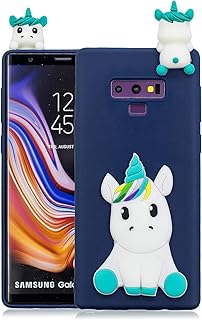 Everainy Coque Compatible pour Samsung Galaxy Note 9 Silicone étui Ultra Mince Fine 3D Licorne Housse Souple Bumper Antichoc Case Caoutchouc TPU Gel Drôle Cover Etui (Bleu foncé)