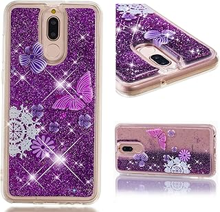 HopMore Coque Huawei Mate 10 Lite Silicone Paillettes Glitter 3D Antichoc TPU Souple Etui Transparente Motif Strass Liquide Ultra Mince Fine Gel Bumper Case Housse pour Fille Femme - Purple Butterfly