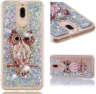 HopMore Coque Huawei Mate 10 Lite Silicone Paillettes Glitter 3D Antichoc TPU Souple Etui Transparente Motif Strass Liquide Ultra Mince Fine Gel Bumper Case Housse pour Fille Femme - Hibou