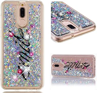 HopMore Coque Huawei Mate 10 Lite Silicone Paillettes Glitter 3D Antichoc TPU Souple Etui Transparente Motif Strass Liquide Ultra Mince Fine Gel Bumper Case Housse pour Fille Femme - Sourire