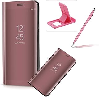 Coque Huawei P10 Plus Clapet, Herzzer Housse Étui en PU Cuir Luxe Placage Technologie avec Transparente Miroir Design Bumper Dur PC Backcover Protector Fonction Stand pour Huawei P10 Plus - Rose Gold