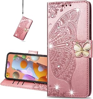 COTDINFORCA Phone Case for Huawei P40 Lite 5G Coque Diamant Svelte PU Bling Crystal Papillon en Relief Protecteur Flip Étui Housse Cover pour Huawei Nova 7 Se Diamond Butterfly Rose Gold SD